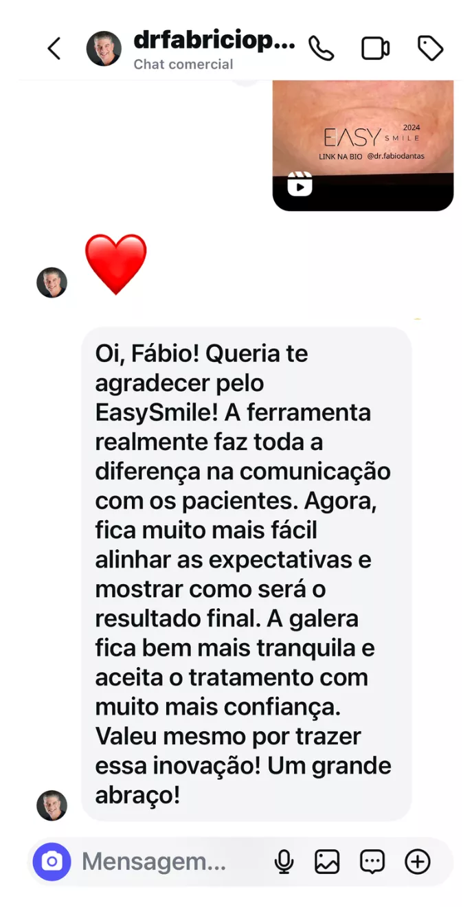 “Na primeira consulta após mostrar o Easy Smile o meu paciente perguntou: Porque todo dentista não faz isso? Aumentei a minha tabela em 25%."